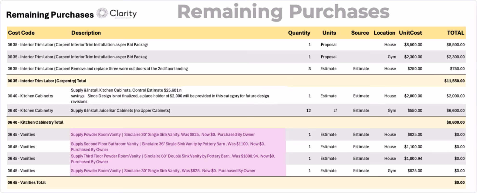 This separation allows homeowners to see, at any moment, how much of the project is locked in versus still evolving.