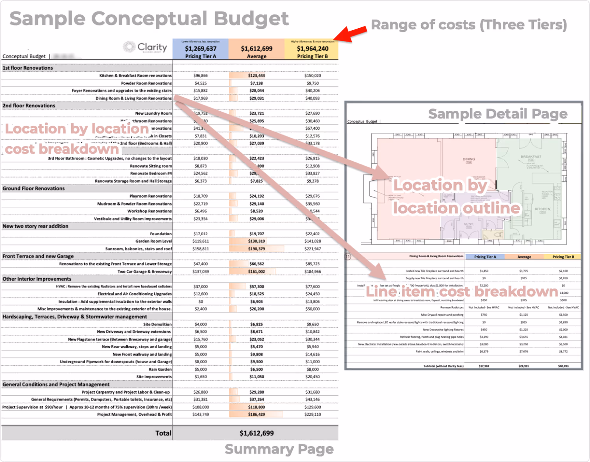 - Translate your drawings and ideas into cost ranges for each of the important rooms and areas